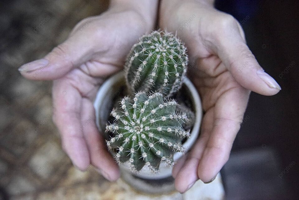 Des cactus et des mains